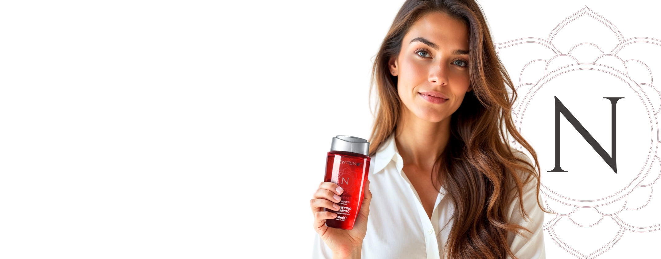 The Newtrino range combines powerful DHT blockers like Saw Palmetto, Procapil® and Anagain® to prevent hair loss while stimulating follicles with nigella sativa, holy basil, rosemary extract among many others for improved circulation and detoxification. Hydrolyzed proteins strengthen hair structure, while a sulfur-rich herbal complex nourishes the scalp, extending the growth phase after every use.
